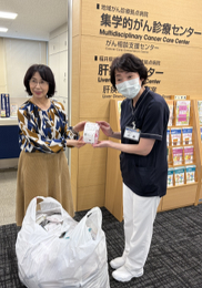 そして今回、ボランティアの方々と一緒に作った「タオル帽子」の寄贈もありました。脱毛でお困りの方は、どうぞお気軽にがん相談支援センターにお立ち寄りください。