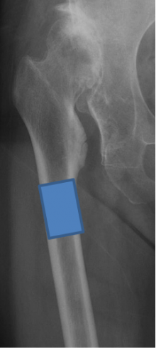 このような場合、大腿骨を数cm切り取り(短縮骨切り術)、正常な関節の位置に新しく人工関節を作り直しする手術を行います。
