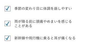 お天気頭痛の大きな要因は気圧です。季節の変わり目だけでなく、新幹線や飛行機の移動時、エレベーターの昇降時にも症状が現れます。