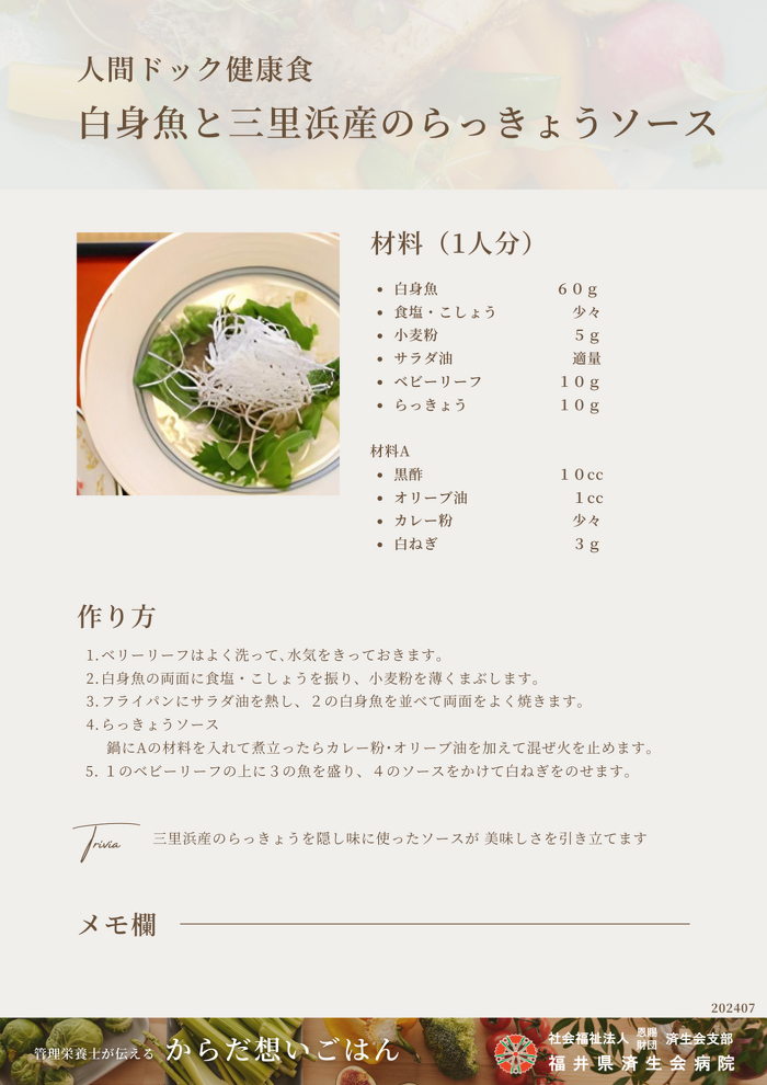 【健康食レシピ】白身魚と三里浜産のらっきょうソース
