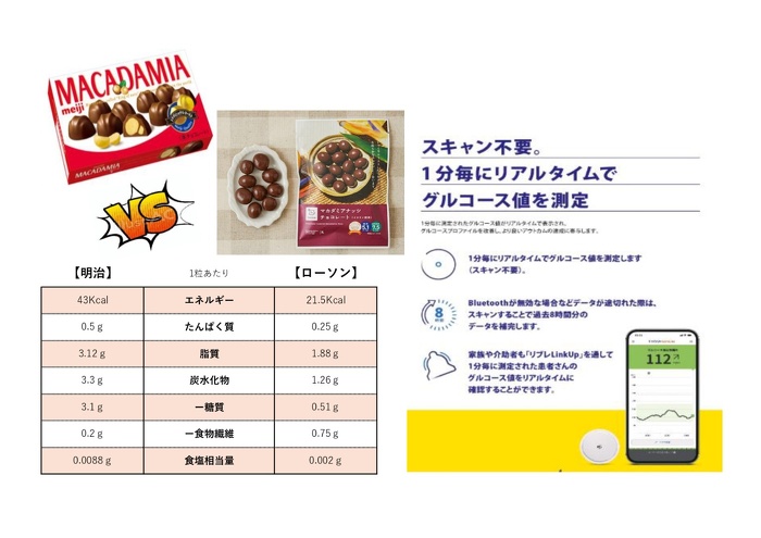 1分毎に血糖値を測定し、自動でスマートフォンに送信されるため、生活習慣と血糖値の関係を可視化できる点を強調しました。