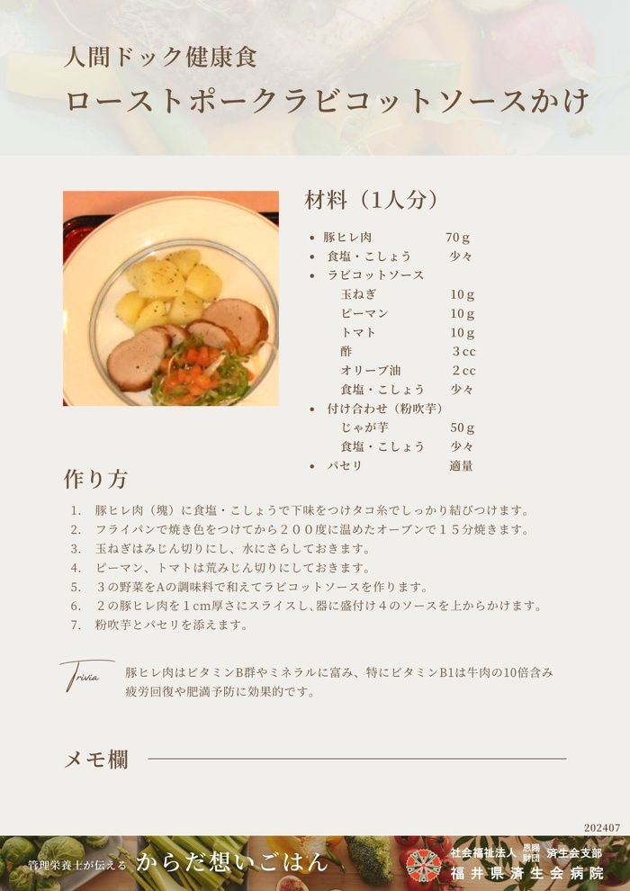 当センターの人間ドックでは、当院管理栄養士とユアーズホテルのシェフとで考案し