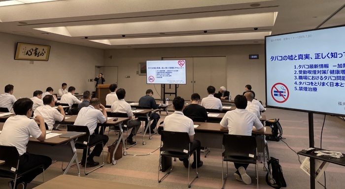 2025年7月10日、福井県警察本部にて、福井県済生会病院 呼吸器外科顧問であり禁煙認定専門指導医でもある小林弘明氏、慢性呼吸器疾患看護認定看護師の鍋島美鶴氏による禁煙をテーマにした健康教室を開催しました。