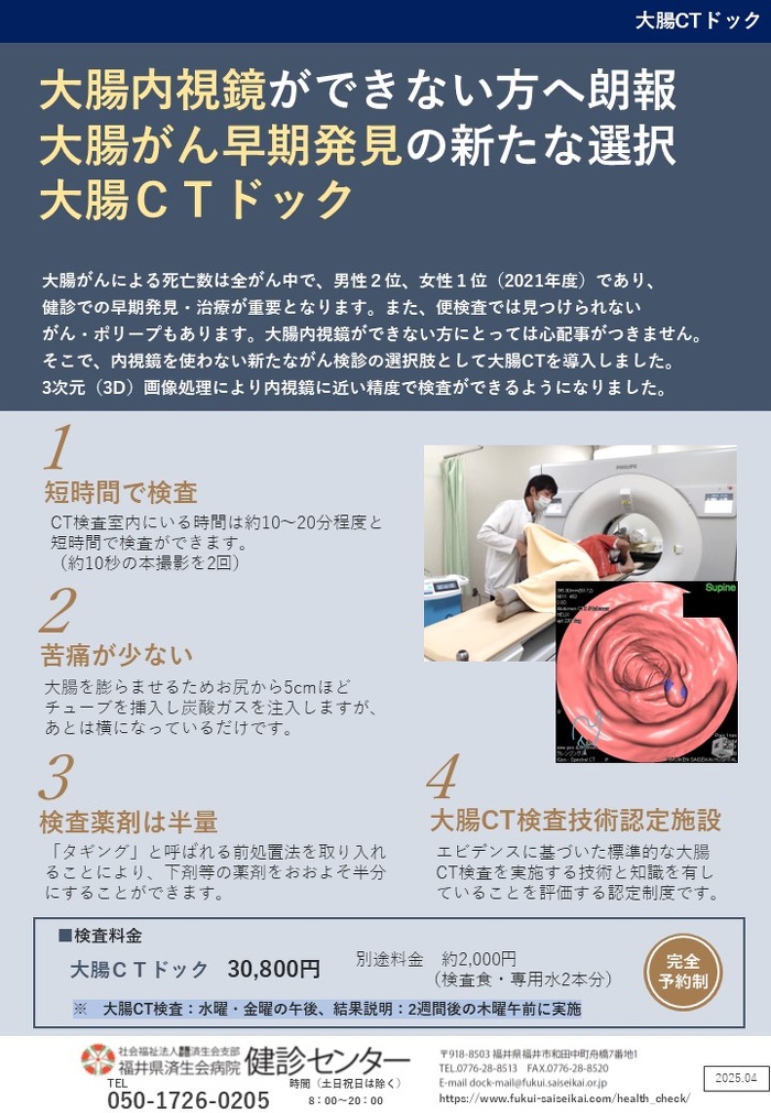 大腸がん早期発見の新たな選択となる、大腸CTドックが2025年8月4日(月)からスタートします。