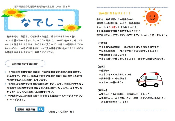 広報誌 病後児保育 なでしこ3号