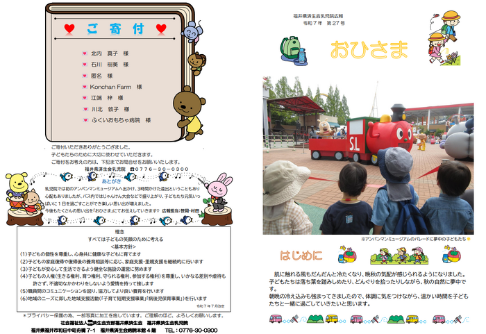 “おひさま27号”が発行されました。子どもたちの元気な姿をご覧ください。