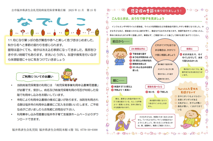 “なでしこ15号”が発行されました。病後児保育について発信していきます。