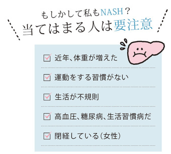 肝炎というとB型肝炎やC型肝炎などのウイルス性肝炎をイメージする方も多いでしょう。これらの肝炎は治療の進歩により減少しています。逆に増加しているのがNASH。肥満、糖尿病、高血圧、脂質異常症など生活習慣病を抱えている方は要注意です。