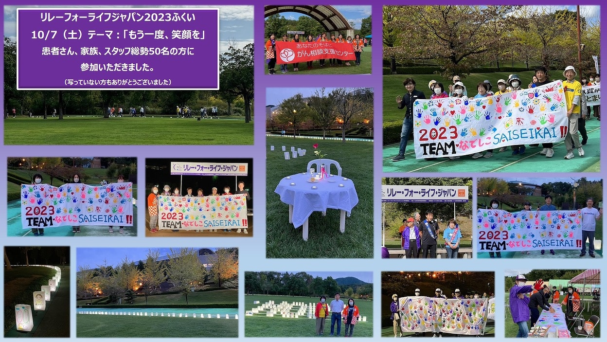 ※ リレー・フォー・ライフ(RFL)とはがんと闘う方々の勇気を称え、家族や支援者が共に交替で、24時間誰かが歩き続け募金活動を行うチャリティーウォーキングイベントです。