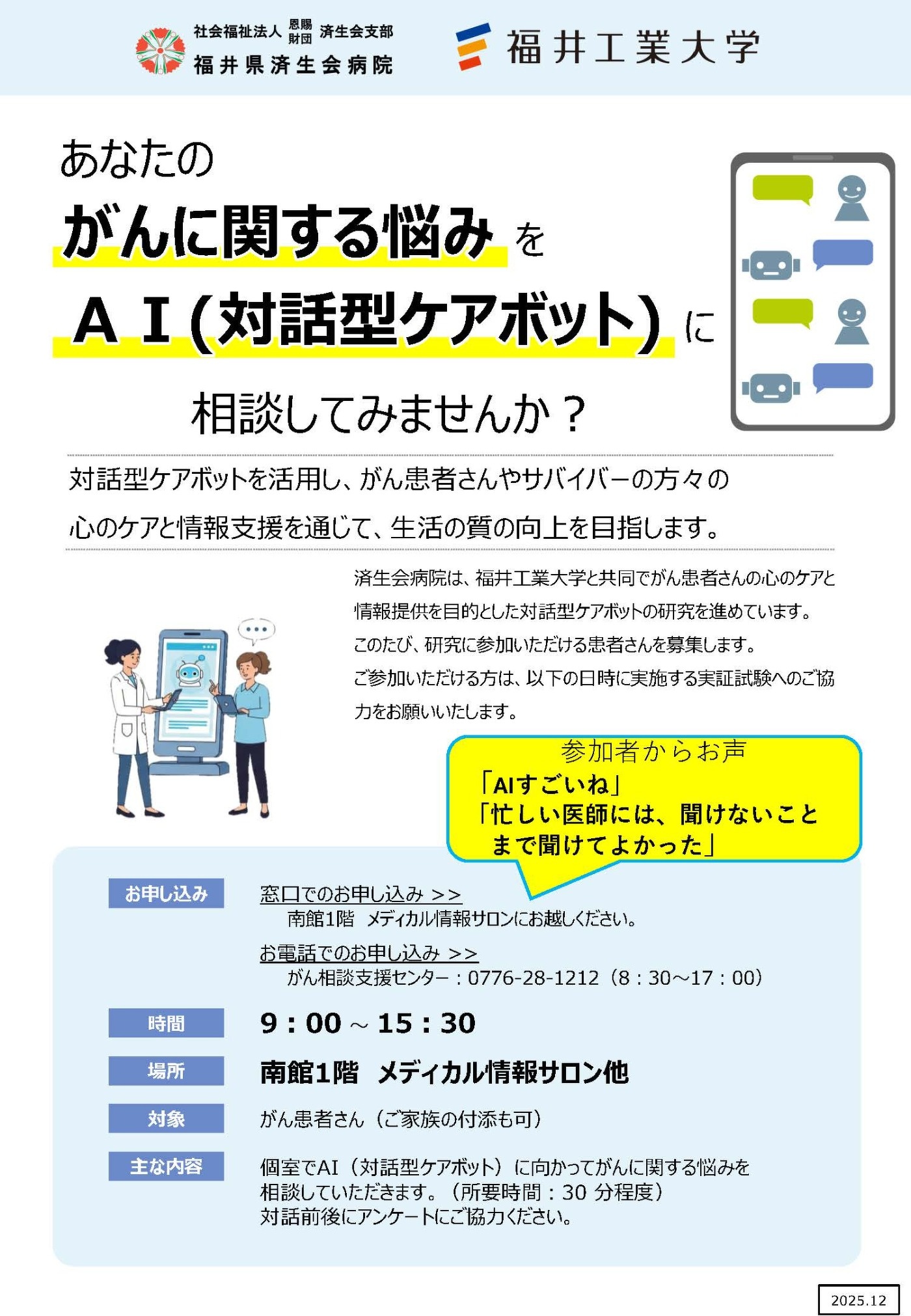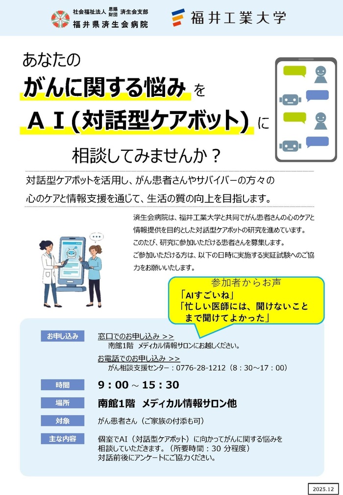 あなたのがんに関する悩みをAI(対話型ケアボット)に相談してみませんか?