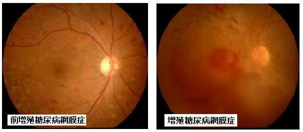 単純糖尿病網膜症、前増殖糖尿病網膜症、増殖糖尿病網膜症と進行し、治療により安定すると増殖停止糖尿病網膜症となります。