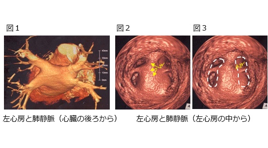 図2:肺静脈内の異常興奮が心房全体に伝達される(マルチスライスCTを用いた模式図)