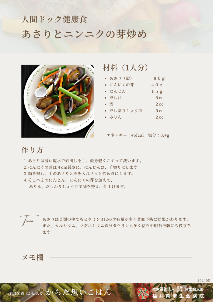 当センターの人間ドックでは、当院管理栄養士とユアーズホテルのシェフとで考案し