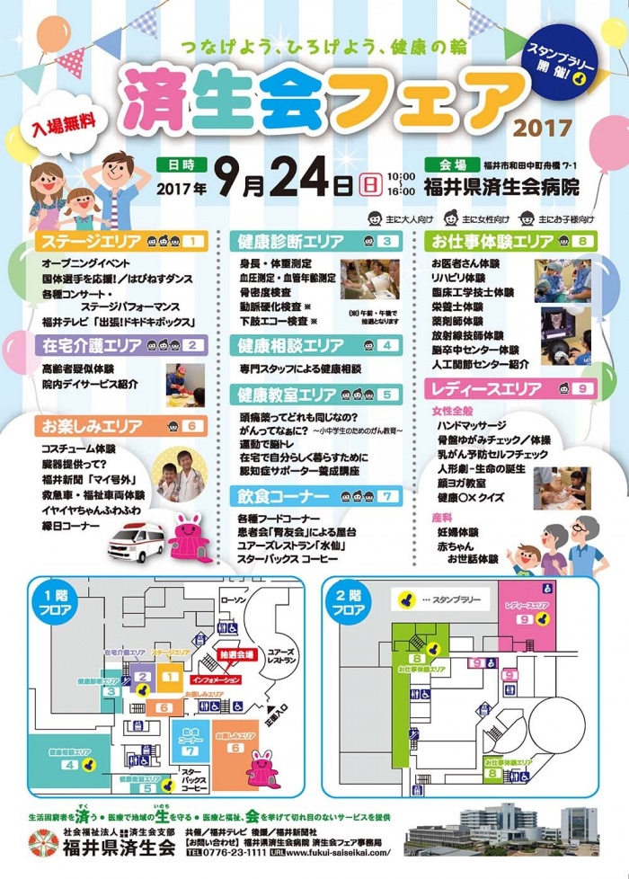 「つなげよう、ひろげよう、健康の輪」をテーマに、9月24日、済生会フェアを当院で開催しました。