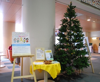 小児がん支援のゴールドリボンツリーを設置