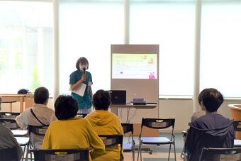 5月12日に行われた「看護の日」記念事業では、来院者が専門看護師によるセミナーに参加し、皮膚の水分量チェックや体脂肪測定を体験されていました。専門看護師は、保湿クリームを縦に塗るだけでなく、横にも伸ばすようアドバイスしていました。イベントを通して看護を身近に感じてもらえたら幸いです。