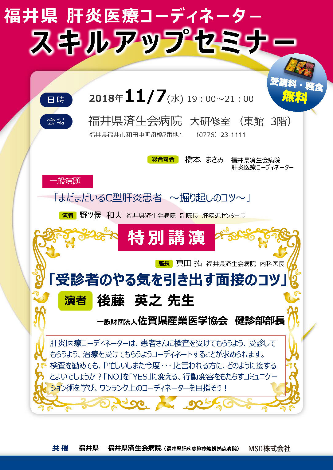 福井県肝炎医療コーディネータ- スキルアップセミナーのご案内