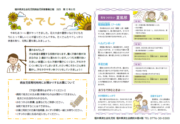 “なでしこ12号”が発行されました。病後児保育について発信していきます。
