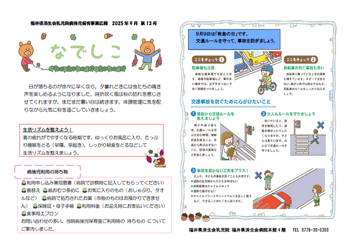 “なでしこ13号”が発行されました。病後児保育について発信していきます。
