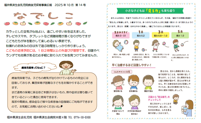 “なでしこ14号”が発行されました。病後児保育について発信していきます。
