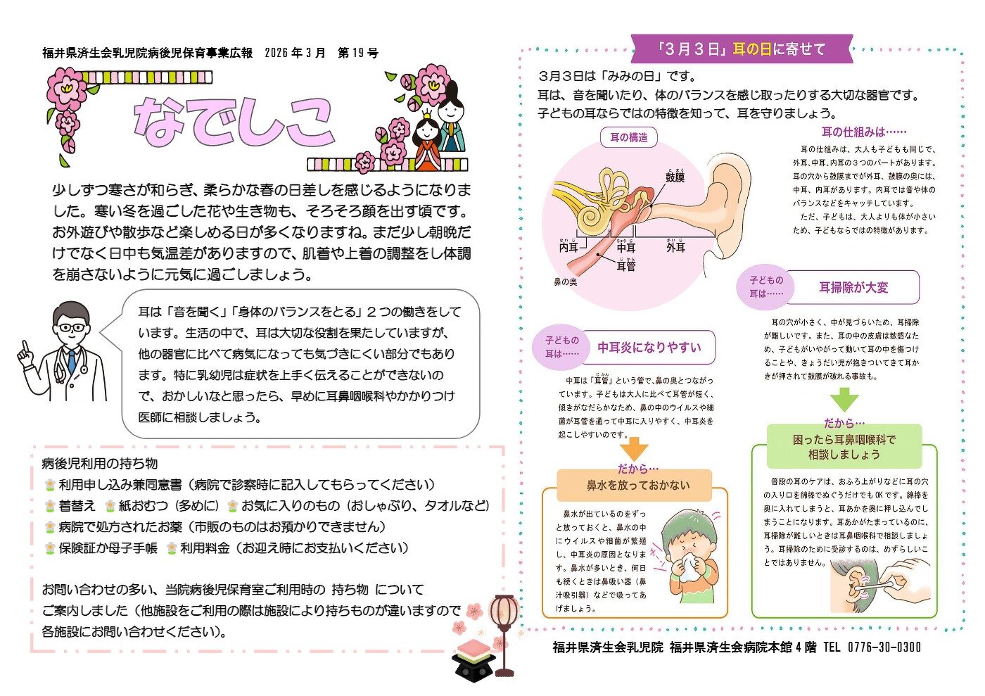 “なでしこ19号”が発行されました。病後児保育について発信していきます。